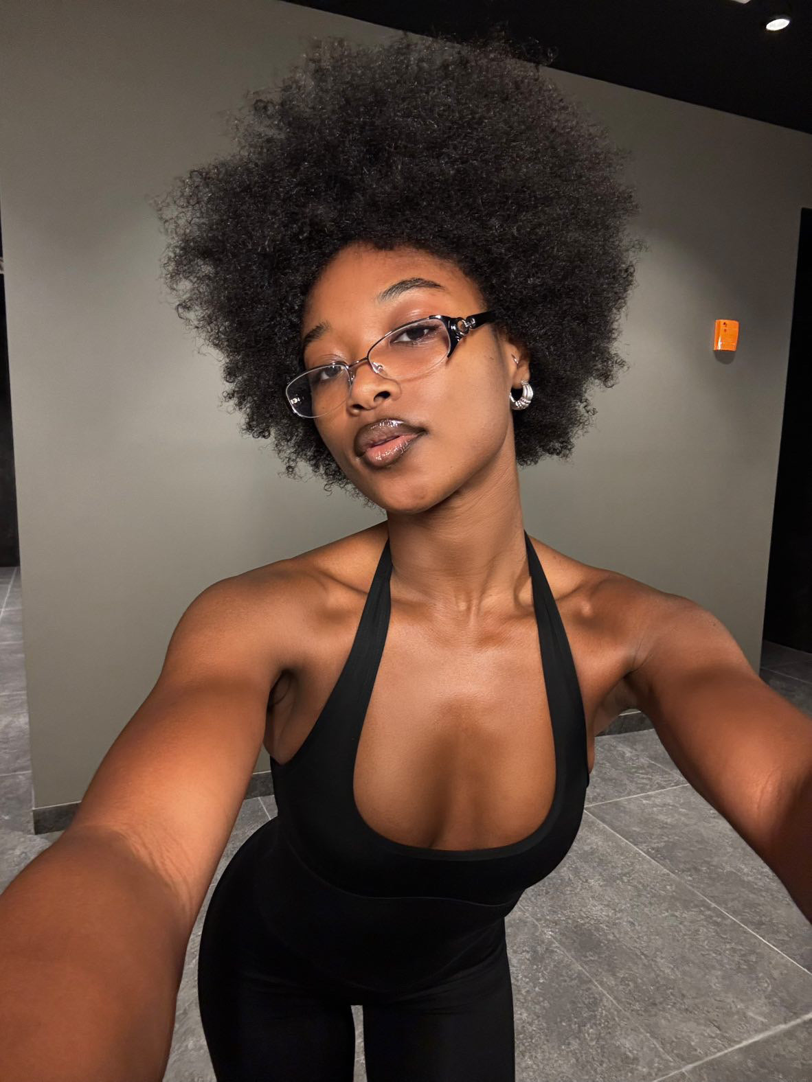 Amber wears a L.