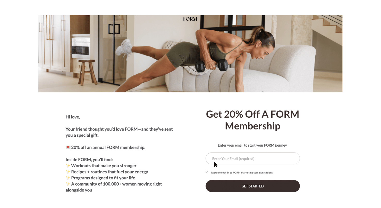 *Friend must be a new FORM member to receive the 20% off discount, and the offer cannot be combined with any other offers. Other terms and conditions apply; click here to learn more.