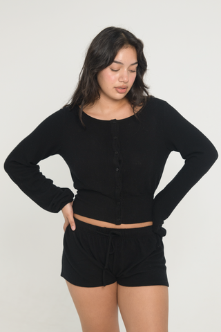 This Cardigan Sweater is all about the details. Meet your new favorite oh-so-soft cardigan that gives you the comfort of your favorite sweater. Featuring pearl buttons down the front, a wider boat neckline, and a ribbed, fitted waist, it’s both elegant and cozy. Ribbed cuffs add a chic touch to the sleeves, making this the perfect piece to throw over any outfit — dress it up or keep it casual, it’s a total style win.